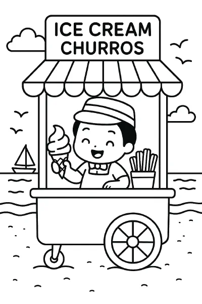 Dive into a collection of beach-themed coloring pages filled with sunshine, smiles, and simple kawaii-style designs. These free printables are perfect for kids, with bold lines and easy shapes to color.