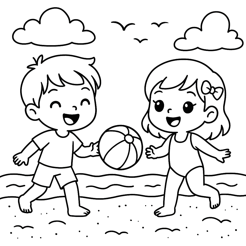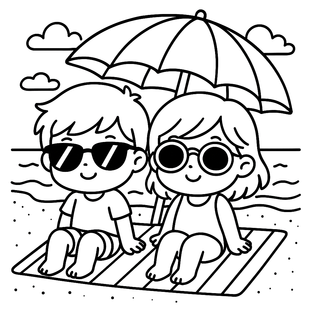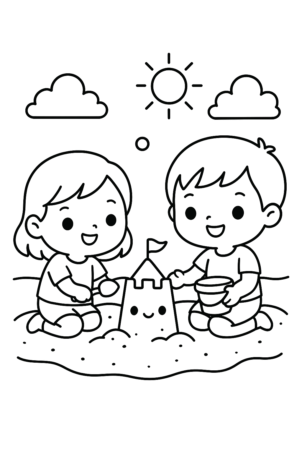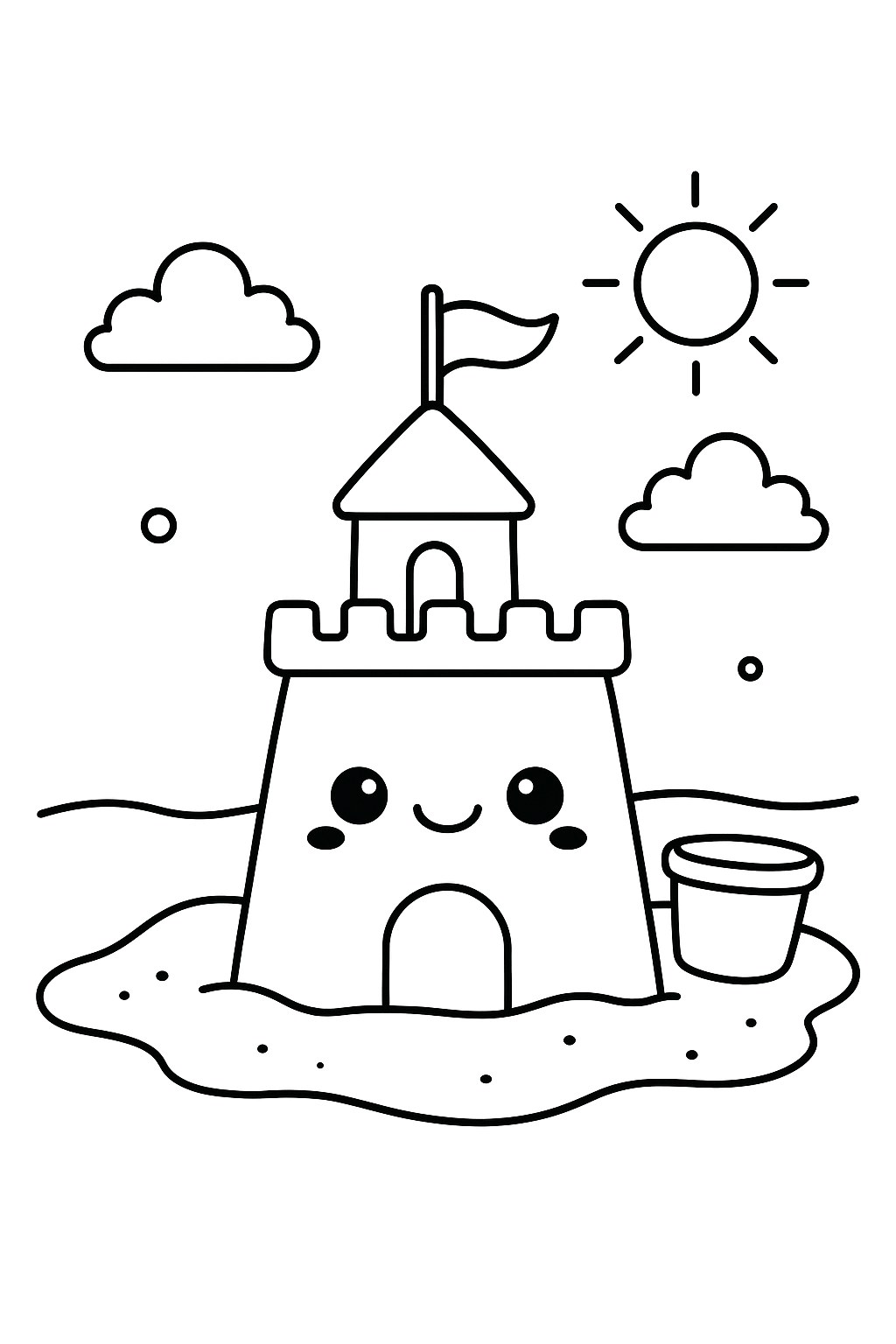 Dive into a collection of beach-themed coloring pages filled with sunshine, smiles, and simple kawaii-style designs. These free printables are perfect for kids, with bold lines and easy shapes to color.